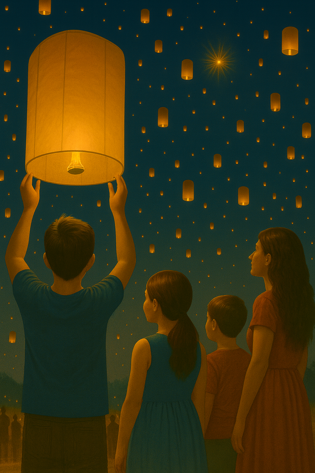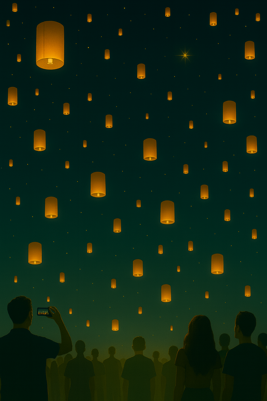 Die Laternen-Show beginnt nach Sonnenuntergang für maximale Sichtbarkeit und Wirkung.